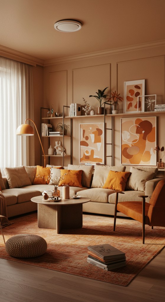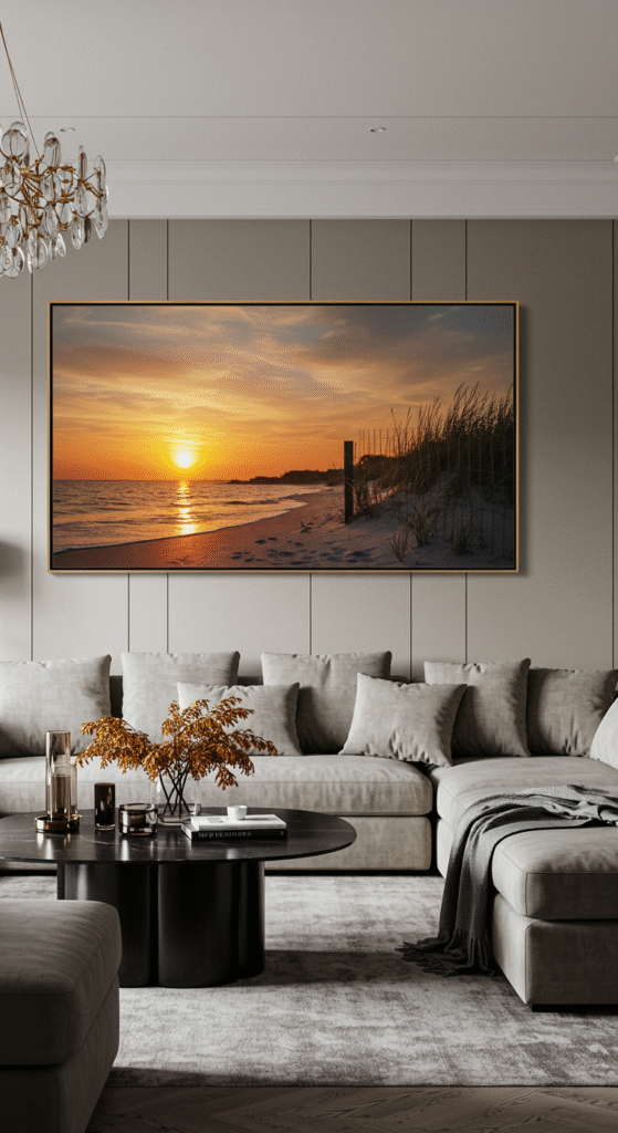 Wall art personalizes a living room and completes its aesthetic. Abstract paintings, photography, or gallery walls add character. Oversized pieces create a bold focal point. Coordinated frames and colors ensure a cohesive look. For smaller spaces, mirrors or minimalist prints work beautifully. Wall art transforms plain walls into storytelling elements.