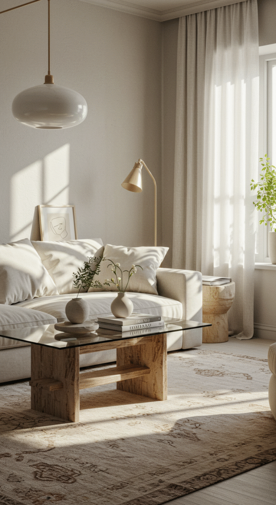 Scandinavian design is one of the most beloved living room aesthetics. It emphasizes natural light, simple lines, and functional furniture. Neutral colors, often whites and light grays, dominate the palette. Wood accents and plants add warmth and organic character. The focus is on balance between beauty and practicality. A Scandinavian living room feels airy, peaceful, and timeless.