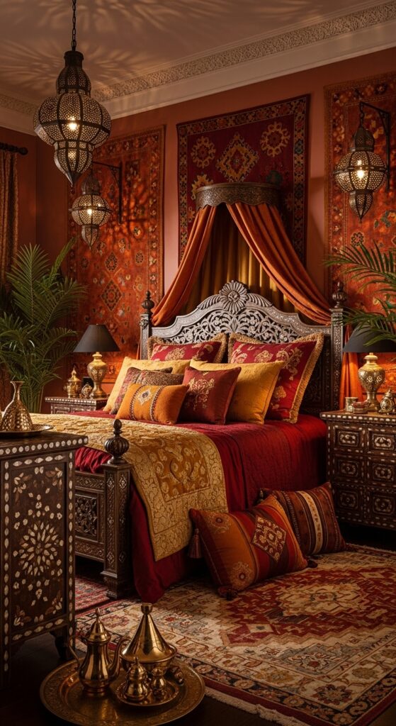 Arabian bedroom decor is all about luxury, warmth, and rich cultural beauty. Think vibrant colors, ornate details, soft fabrics, and a sense of royal comfort. Inspired by Middle Eastern design, these bedrooms blend traditional artistry with modern elegance. Here are 10 Arabian bedroom ideas that will help you transform your room into a dreamy desert retreat full of magic and charm.